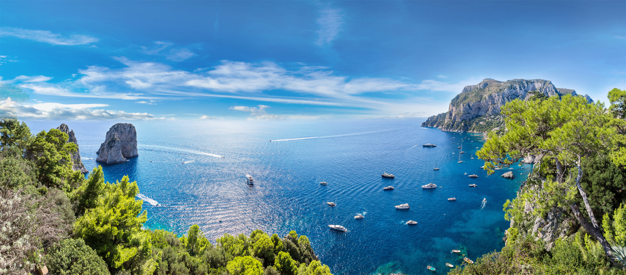 Stop for a swim in the crystal-clear waters of Marina Piccola or one of the many hidden coves accessible only by sea. Enjoy free time to explore the island on foot — visit the famous Piazzetta, the Gardens of Augustus, or take the chairlift to Monte Solaro for panoramic views.